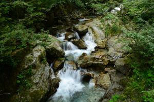 次が生物ろ過。エサの残りや魚の糞、水草の残骸などは水槽内のバクテリアに分解されてアンモニウムイオンになります。それは更に別のバクテリア(硝化細菌)によって「亜硝酸イオン」「硝酸イオン」と分解されていきます。